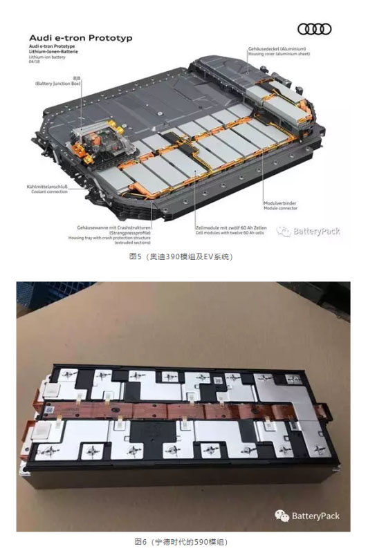 關(guān)于電池模組VDA標(biāo)準(zhǔn)尺寸,市場當(dāng)前主流的長度355mm(如吉利帝豪EV450等眾多車型)正逐漸向390mm(如奧迪E-Tron)和590mm(如廣汽Aion LX)長度過渡。