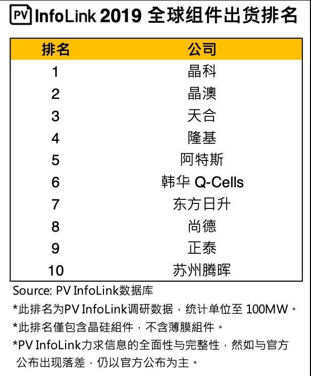 1月19日,第三方權威咨詢機構PVInfoLink發(fā)布2019年全球組件出貨排名榜單,晶澳太陽能蟬聯(lián)全球第二大光伏組件供應商,讓業(yè)界再一次見證了其穩(wěn)健的力量。