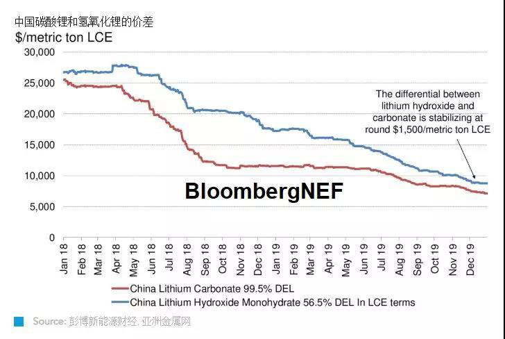 氫氧化鋰與碳酸鋰的價(jià)差將穩(wěn)定在1,500美元/噸碳酸鋰當(dāng)量的水平。