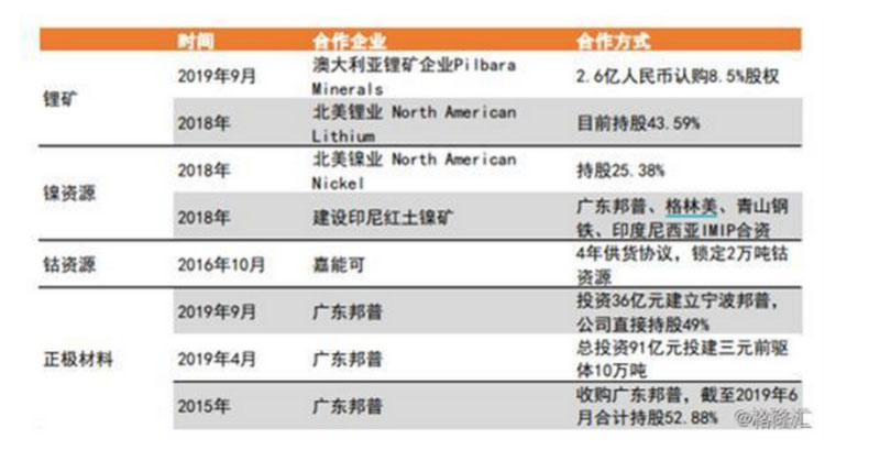 新能源汽車中,電池成本占據(jù)40-50%,而正極材料又占據(jù)電池成本的30-40%,光是鈷、鎳、鋰三類資源占比超過90%。這也是寧德對于上游潛在可收購企業(yè)虎視眈眈的重要原因。
