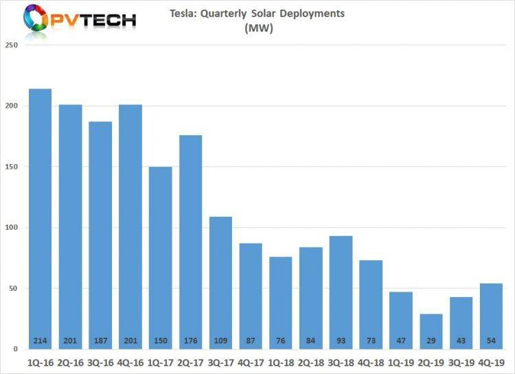 特斯拉公司日前發(fā)布了該公司2019年的全年業(yè)績(jī),表明該公司2019年部署的太陽能裝機(jī)容量為173MW,與2017年的522MW和2018年的326MW的裝機(jī)容量相比相去甚遠(yuǎn)。