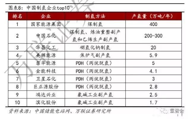 我國煤制氫產(chǎn)能最大的企業(yè)是國家能源集團,其在氫能源產(chǎn)業(yè)有著得天獨厚的優(yōu)勢,目前煤化工板塊年產(chǎn)超過 400 萬噸氫氣,已具備能供應4000萬輛燃料電池乘用車的制氫能力,世界排名第一;中國石化目前擁有制氫能力約300萬噸/年。在氫氣供給方面,無論是煤制氫、可再生能源制氫,還是工業(yè)副產(chǎn)品制氫,中國石化都有巨大的供給能力,氫氣產(chǎn)能在國內(nèi)名列前茅。