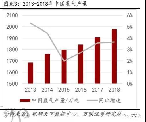 截止至2018年,全球氫氣總產(chǎn)量達到了6500萬噸,48%的氫氣應用于石油煉化、43%的氫氣應用于氨生產(chǎn)。其中中國氫氣產(chǎn)量約2100萬噸,占全球總產(chǎn)量的比例超過30%,凸顯我國產(chǎn)氫大國的地位,為我國開發(fā)利用新能源、加快邁入氫能經(jīng)濟時代創(chuàng)造了有利條件。預計2030年中國氫氣需求量將達到3500萬噸,2050年將達到6000萬噸,產(chǎn)業(yè)鏈年產(chǎn)值約12萬億元。