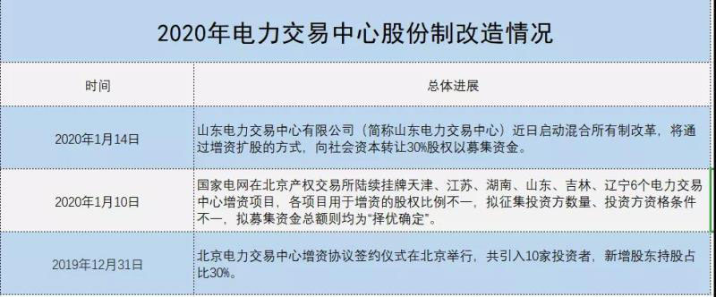 2020年,國(guó)家電網(wǎng)轄區(qū)內(nèi)電力交易中心股份制改革將進(jìn)一步提速。年初以來(lái),天津、江蘇、遼寧、湖南、山東、吉林電力交易中心已經(jīng)啟動(dòng)增資擴(kuò)股措施。預(yù)計(jì),2020年,電力交易中心股份制改革范圍將進(jìn)一步擴(kuò)大,并逐步覆蓋全國(guó),電力交易中心獨(dú)立步伐全面提速。