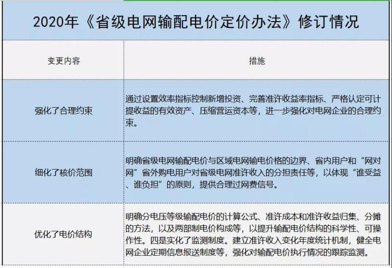 2020年2月5日,國(guó)家發(fā)改委印發(fā)《省級(jí)電網(wǎng)輸配電價(jià)定價(jià)辦法》、《區(qū)域電網(wǎng)輸電價(jià)格定價(jià)辦法》,對(duì)2016年《省級(jí)電網(wǎng)輸配電價(jià)定價(jià)辦法(試行)》、2017年《區(qū)域電網(wǎng)輸電價(jià)格定價(jià)辦法(試行)》進(jìn)行修訂。分析顯示,新一輪輸配電價(jià)成本監(jiān)審更加科學(xué)、細(xì)化,有效抑制電網(wǎng)過(guò)度投資,對(duì)于電網(wǎng)側(cè)降低電力成本、理順價(jià)格形成機(jī)制,都將起到重要助推作用。