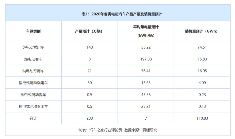 1、2020年中國電動汽車市場電池需求總量可望達(dá)到110GWh