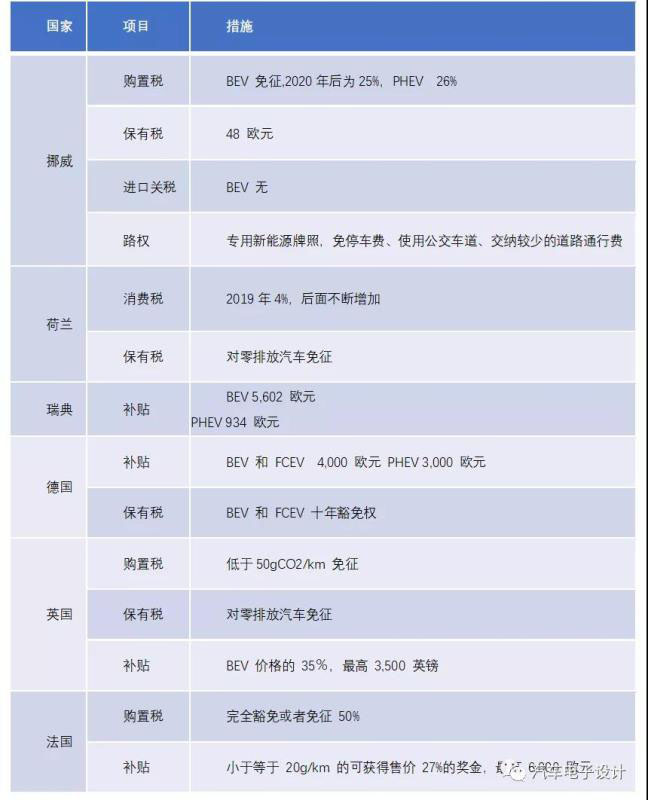 表1 歐洲主要的新能源汽車銷售國家的政策