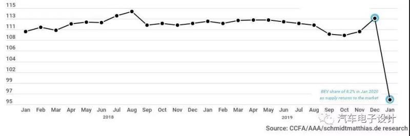 2020年1月的增幅最大的是法國,能看出來法國車企需要降低碳排的決心。而荷蘭經(jīng)歷了一波沖量消費(fèi)以后進(jìn)入一個低谷期,挪威、英國、瑞典和意大利這些國家環(huán)比持平,同比還是有很大的增幅。由于季節(jié)性因素,歐洲的電動汽車冬季購買量不算大,這次整體的情況預(yù)示著歐洲這波量能的增長還是切實(shí)存在物質(zhì)基礎(chǔ)的,不像荷蘭這樣由于VAT增值稅變化刺激出來的。