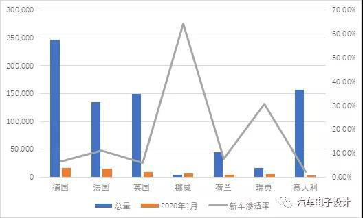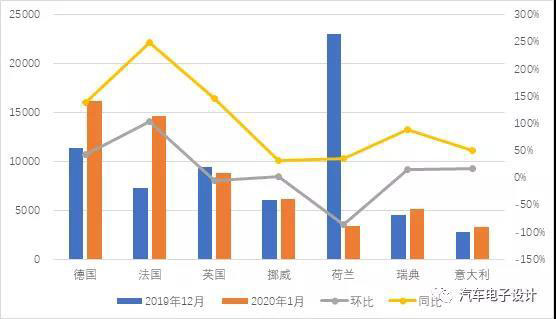 圖1 歐洲的主要電動汽車市場的1月份表現(xiàn)