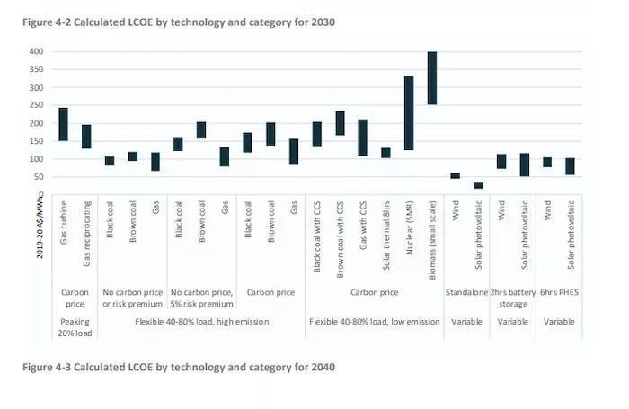 CSIRO表示,在過去的一年里,在煤炭與核能方面幾乎沒有任何新的進(jìn)展來改變其資本成本。顯然,在如今有高可再生能源和分布式發(fā)電的現(xiàn)代電網(wǎng)中,這些煤炭或核能發(fā)電廠的規(guī)模太大,不夠靈活。而在小型模塊化反應(yīng)堆方面,報告稱沒有關(guān)于發(fā)電成本的確鑿證據(jù),因為這些項目還沒有建造,作出這一預(yù)估的主要依據(jù)是這類技術(shù)的供應(yīng)商,“而根據(jù)過往經(jīng)驗,基于供應(yīng)商的預(yù)估往往都會比較低”。另外,對這些反應(yīng)堆的質(zhì)量要求比較高,至少還需要10年的發(fā)展時間,而這期間仍將帶來至少兩倍于風(fēng)能、太陽能和儲能的能源成本。