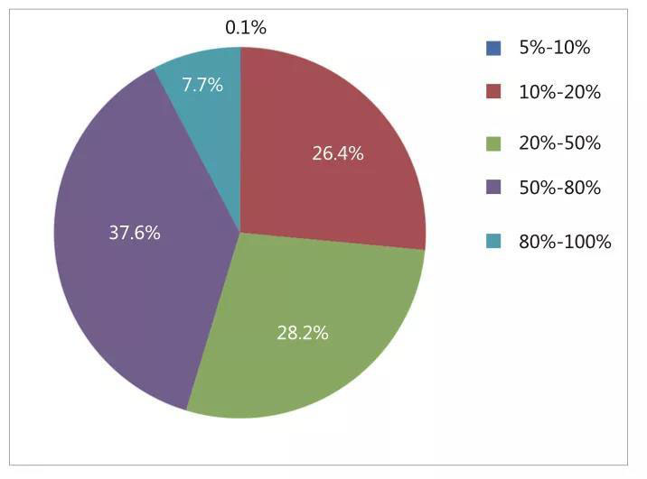 2019年統(tǒng)計(jì),新建數(shù)據(jù)中心的平均機(jī)柜上架率主要集中在50%~80%之間,上架率低于10%和高于80%的占比較低。