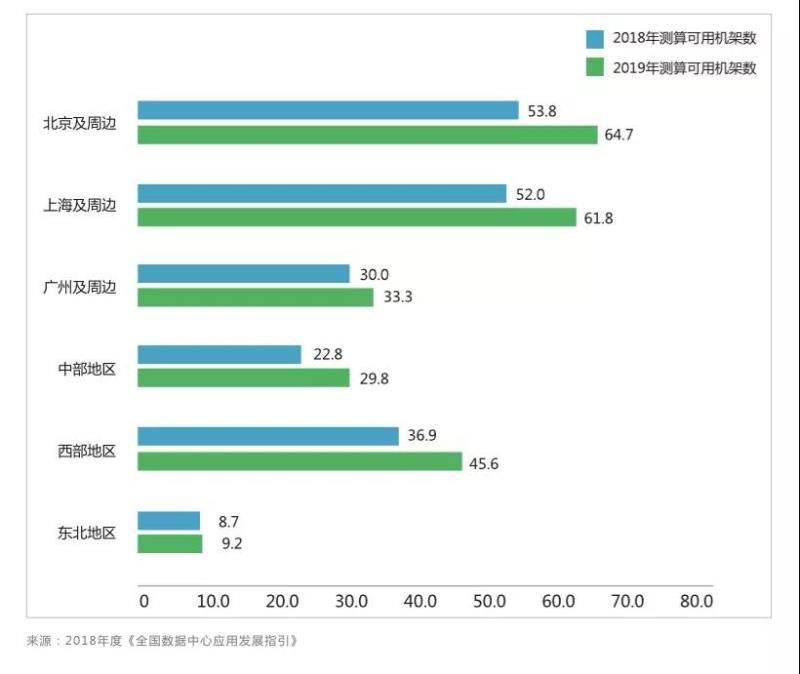 2018年國(guó)內(nèi)核心城市及其他地區(qū)機(jī)架供需情況
