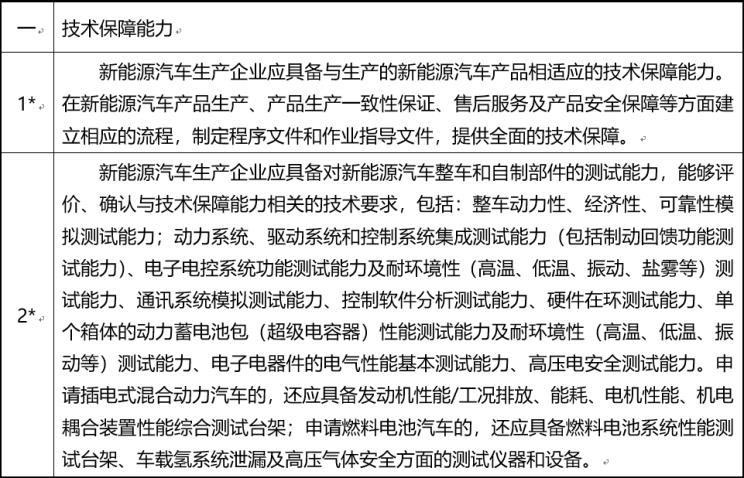 一、將第五條第三款修改為:“(三)具備生產(chǎn)新能源汽車(chē)產(chǎn)品所必需的技術(shù)保障能力、生產(chǎn)能力、產(chǎn)品生產(chǎn)一致性保證能力、售后服務(wù)及產(chǎn)品安全保障能力,符合《新能源汽車(chē)生產(chǎn)企業(yè)準(zhǔn)入審查要求》(簡(jiǎn)稱(chēng)《企業(yè)準(zhǔn)入》)。