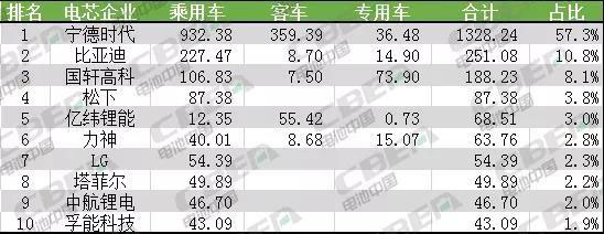 圖:2020年1月國內動力電池裝機量TOP10的企業(yè)