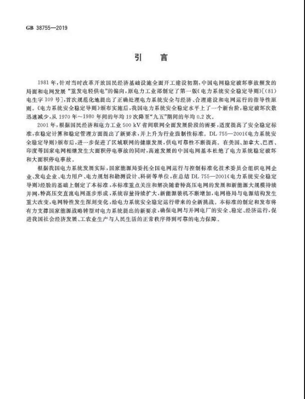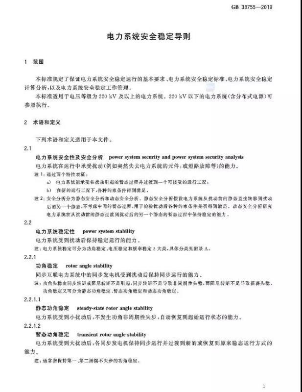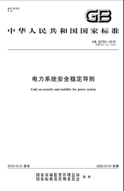 日前,強(qiáng)制性國(guó)家標(biāo)準(zhǔn)GB 38755-2019《電力系統(tǒng)安全穩(wěn)定導(dǎo)則》發(fā)布。