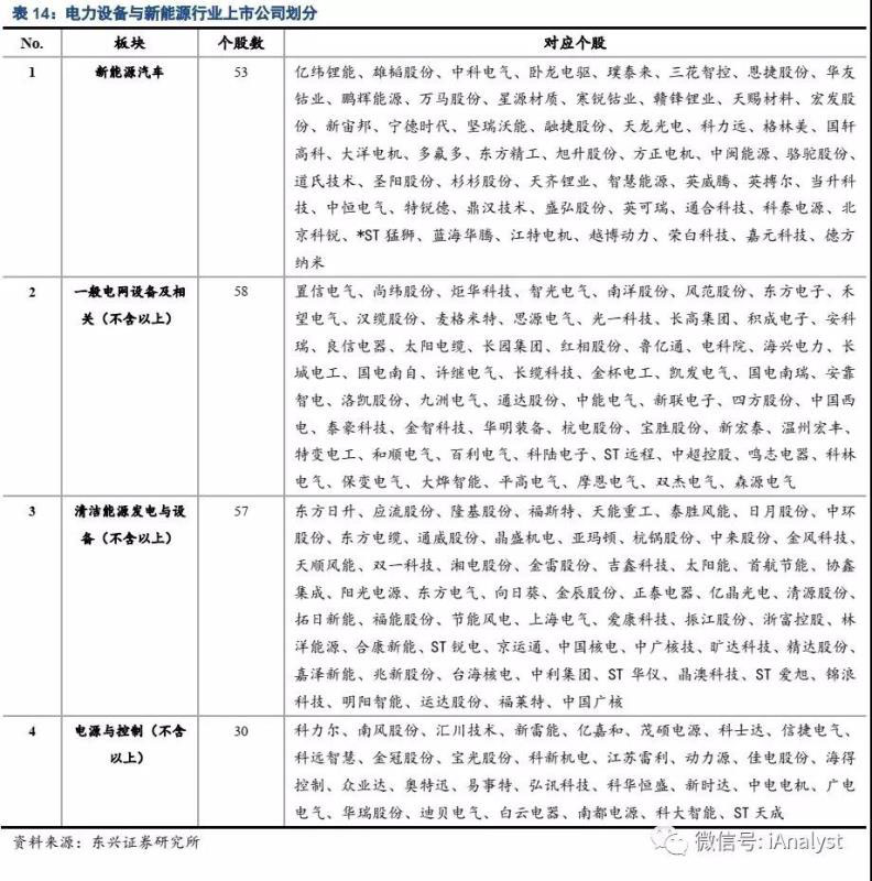 電力設(shè)備與新能源行業(yè)上市公司分類