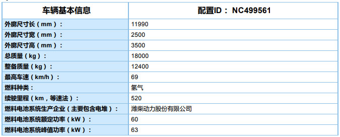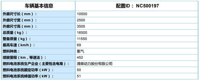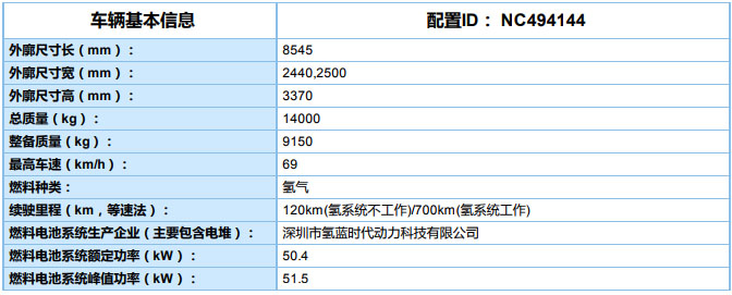 其中,濰柴動力配套2款,燃料電池系統(tǒng)額定功率分別為50 kW、60 kW;豫氫動力配套2款,額定功率分別為42 kW、45 kW;捷氫科技配套1款,額定功率為83.5 kW;弗爾賽配套1款,額定功率為45 kW;氫藍(lán)時代配套1款,額定功率為50.4kW。本批次所有車型燃料電池系統(tǒng)平均額定功率為53.7 kW。