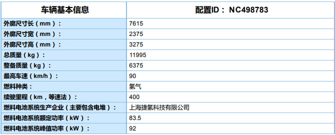 本次推薦目錄有兩大亮點(diǎn):1、捷氫科技配套的燃料電池系統(tǒng)額定功率83.5 kW,在目前所有已出的有效推薦目錄車型中,額定功率居第二,僅次于2019年第11批中上海杰寧配套的江鈴重汽燃料電池半掛牽引車,該款車型燃料電池系統(tǒng)額定功率95 kW;