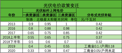 日前,2020年光伏電價(jià)政策征求意見稿出爐。三類資源區(qū)指導(dǎo)價(jià)每度降至0.33元、0.38元、0.47元,工商業(yè)分布式(自發(fā)自用、余電上網(wǎng))降至每度0.05元。