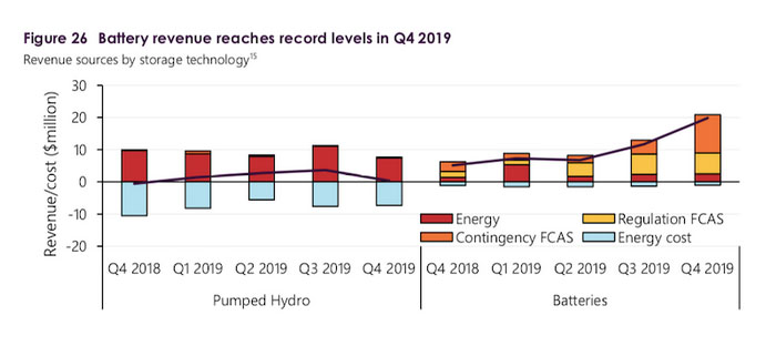根據(jù)澳大利亞能源市場運營商(AEMO)的調查,僅在2019年第四季度,澳大利亞正在運營的五個電池儲能系統(tǒng)(其中包括 Hornsdale、Dalrymple North、Ballarat、Gannawarra和新建成的Bonney Lake)就獲得了2,000萬美元收入,與2018年第四季度相比增加了70%。