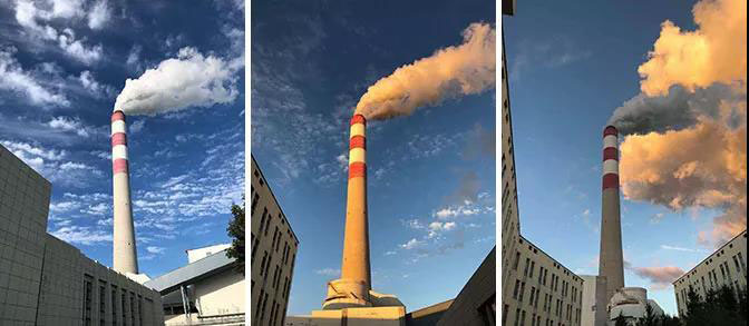不同地方環(huán)保機(jī)構(gòu)對數(shù)點(diǎn)濕煙羽的看法和治理要求并不統(tǒng)一,有的將“白色煙羽”“灰色煙羽”“藍(lán)色煙羽”統(tǒng)稱為“有色煙羽”,有的則認(rèn)為治理濕煙羽只是針對“消白”。由于認(rèn)識上不一致,所以提出“觀測法”和“排煙溫度法”不同的判定依據(jù)缺乏嚴(yán)謹(jǐn)性。如,“觀測法”要求觀察者在觀測條件下未見明顯有色煙羽即可視為有色煙羽消除,但在執(zhí)法中存在一定干擾因素,如,光線、觀察角度、觀察者主觀判斷等;而“排煙溫度法”針對不同控制措施、季節(jié)等提出排煙溫度限值,通過煙氣在線監(jiān)測系統(tǒng)(CEMS)可監(jiān)管排煙溫度,但“顏色”“控溫”與“環(huán)境質(zhì)量”不存在對應(yīng)關(guān)系,因此也無法有效反映濕煙羽控制效果。圖2中的3張圖是我在內(nèi)蒙古一個電廠所攝,電廠環(huán)保設(shè)施穩(wěn)定運(yùn)行,全部滿足環(huán)保要求,但煙流在不同光線、不同時間、不同角度下呈現(xiàn)不同顏色。實(shí)際上生活常識告訴我們,即便是云有時是“白云”有些則是“烏云”有時更是“彩霞”。