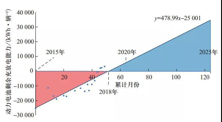 3、新售電動(dòng)汽車動(dòng)力電池全生命周期充放電能力將逐漸超過車用需求,2025年新車的剩余充放電能力將有望超過3萬kWh/輛。