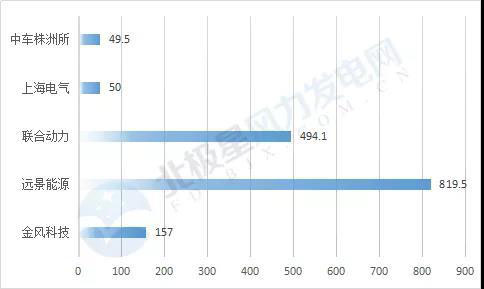 中標風電整機商涉及5家,分別是金風科技、遠景能源、聯(lián)合動力、上海電氣、中車株洲所。