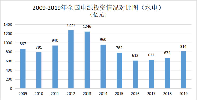 2009-2019年各類型電源投資情況進行對比,如下圖: