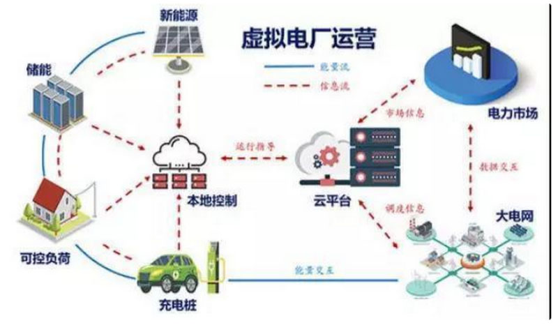 VPP就像是一個(gè)能源收集平臺(tái),將一定區(qū)域內(nèi)的光伏電池板、蓄電池等電源系統(tǒng)結(jié)合起來(lái)統(tǒng)一管理,根據(jù)不同的電力需求供應(yīng)相應(yīng)的電力。雖然每個(gè)電力規(guī)模很小,但積少成多,收集起來(lái)就能夠像一個(gè)發(fā)電站一樣輸出電力。