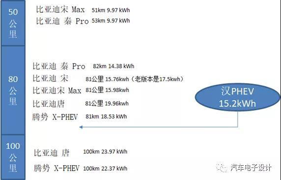 圖3 比亞迪的PHEV續(xù)航里程和電池配置
