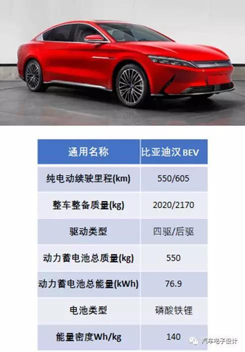 備注:漢EV 有兩種不同的配置,單電機(jī)(163 kW)和雙電機(jī)(前 163 kW,后 200 kW)2種動(dòng)力類型。并且漢BEV是明確首款使用刀片電池+磷酸鐵鋰的方案。