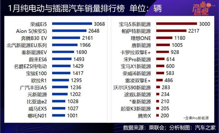 值得注意的是造車新勢力,蔚來汽車、理想汽車、威馬汽車、合眾新能源四家新勢力1月份的批發(fā)銷量均超過了1000輛。蔚來汽車以蔚來ES6為主,銷售1493輛,蔚來ES8批發(fā)銷售105輛。理想汽車交付1180輛理想ONE,威馬EX5銷售1027輛,合眾新能源的哪吒N01銷售1001輛。另外,華晨寶馬、上汽大眾、廣汽豐田三家合資車企進(jìn)榜,廣汽豐田的iA5銷售1236輛,雷凌雙擎E+銷售486輛。合資車企在2020年的動作會加快,苗頭已現(xiàn)。