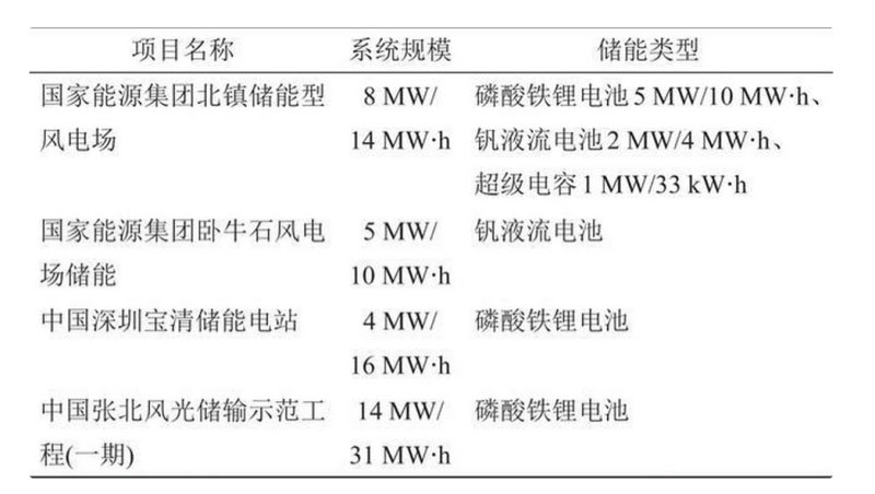 相比于其他領(lǐng)域,儲能在新能源并網(wǎng)應(yīng)用中需要滿足一些特殊要求:由于新能源電站所處地理位置較為偏遠(yuǎn),儲能系統(tǒng)需滿足配置靈活、安裝方便、使用壽命長等特點(diǎn),以減少建設(shè)周期,并盡可能做到減少維護(hù)或免維護(hù);另外新能源電站環(huán)保要求較高,儲能電池、裝置在選擇時(shí)應(yīng)盡量具備綠色無污染等特點(diǎn)。儲能系統(tǒng)的放電以低倍率0.5 C、1 C為主,PCS接入方式以百千瓦級多機(jī)并聯(lián)經(jīng)過升壓接入6 kV或10 kV母線為主。目前,鋰離子電池或釩液流電池被公認(rèn)為該應(yīng)用領(lǐng)域的主要技術(shù)手段[17],其中磷酸鐵鋰電池市場占較高,而隨著三元鋰電池在電化學(xué)儲能項(xiàng)目中暴露出來與日增加的安全問題,越來越多的集成商逐漸避免采用三元鋰系電池。另外,超級電容在功率波動(dòng)平抑,鉛碳電池在棄風(fēng)、棄光回收等應(yīng)用場合也有應(yīng)用案例。表4中列舉了國內(nèi)具有代表性的大規(guī)模新能源并網(wǎng)項(xiàng)目。