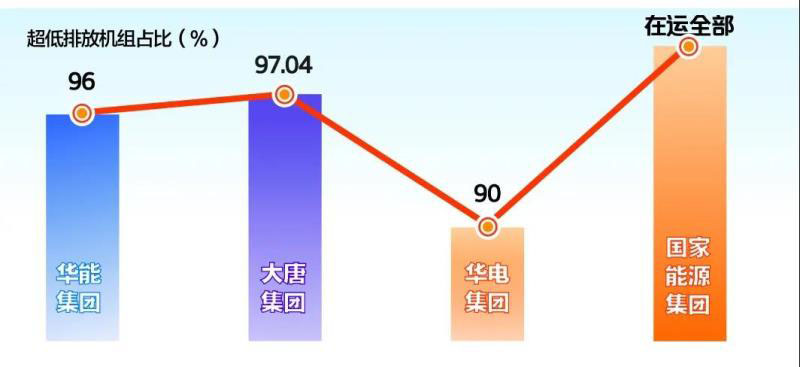 2019年,華能集團(tuán)污染防治攻堅深入推進(jìn),累計289臺、96%的煤機(jī)實現(xiàn)超低排放,完成“十三五”國家改造任務(wù)的110.5%。大唐集團(tuán)超低排放燃煤機(jī)組容量占比達(dá)97.04%。華電集團(tuán)抓好超低排放機(jī)組改造,超低排放機(jī)組占比超過90%,單位電能煙塵、二氧化硫、氮氧化物排放量分別同比降低13.5%、11.1%、5.8%。國家能源集團(tuán)開展污染防治,在運常規(guī)煤電機(jī)組全部實現(xiàn)超低排放,煙塵、二氧化硫和氮氧化物等污染排放績效同比分別下降 21.1%、12.4%和9.64%。國家電投集團(tuán)加強超低排放改造,加大污染物排放管控力度,實現(xiàn)排放達(dá)標(biāo)。(國家電投集團(tuán)數(shù)據(jù)略)