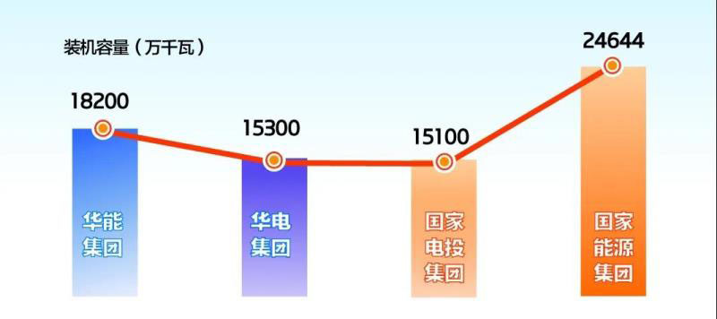 截至2019年底,國家能源集團(tuán)全年新增電力裝機(jī)757萬千瓦,裝機(jī)容量達(dá)24644萬千瓦。華能集團(tuán)裝機(jī)總量達(dá)到18200萬千瓦。華電集團(tuán)裝機(jī)容量為15300萬千瓦。國家電投集團(tuán)裝機(jī)規(guī)模達(dá)15100萬千瓦。(大唐集團(tuán)數(shù)據(jù)略)