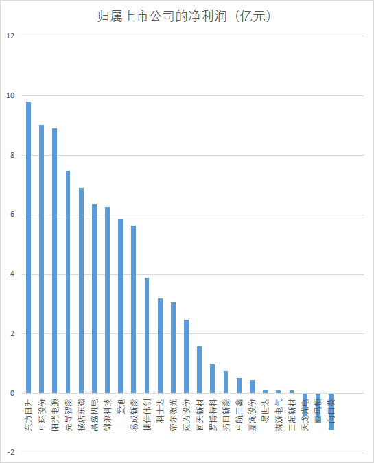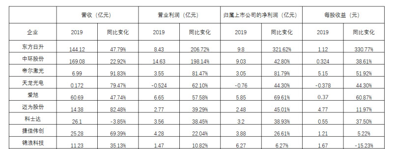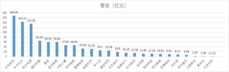 在已公布業(yè)績快報的企業(yè)中,營收超過百億的企業(yè)有中環(huán)股份、東方日升及陽光電源。