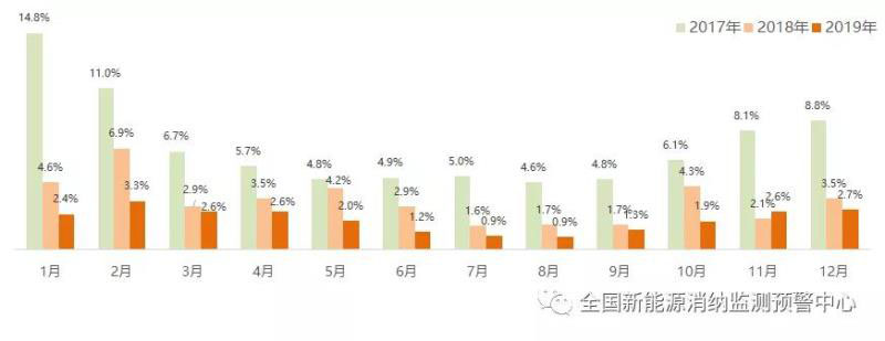 截至12月底全國(guó)棄風(fēng)率月度變化情況