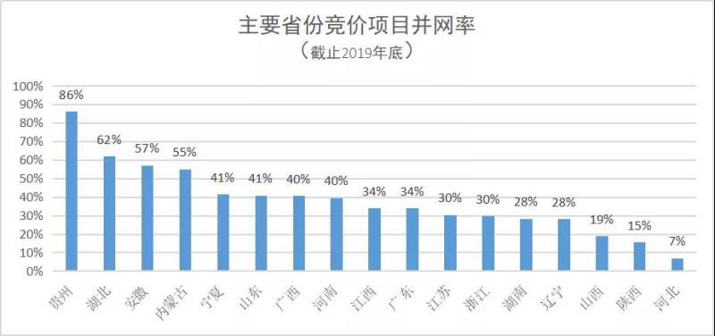 遼寧因為新的競價項目只有分布式光伏,所以28%的并網(wǎng)率可以反映出,東北的分布式項目很難吸引投資企業(yè)的關注。而山西、陜西和河北的并網(wǎng)率都不足20%,意味著這三個省的管理模式在2020年有待進一步提升和改進。