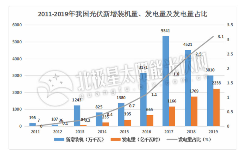 在太陽(yáng)能發(fā)電領(lǐng)域,發(fā)展趨勢(shì)同樣向喜。截止2019年底,我國(guó)太陽(yáng)能發(fā)電累計(jì)裝機(jī)容量已達(dá)20468萬(wàn)千瓦時(shí),其中光伏發(fā)電20426萬(wàn)千瓦;太陽(yáng)能發(fā)電量也是一路高歌猛進(jìn),2019年全國(guó)太陽(yáng)能發(fā)電量2238億千瓦時(shí),同比增長(zhǎng)27%,占全國(guó)總發(fā)電量的3.1%, 不得不說我國(guó)的太陽(yáng)能發(fā)電產(chǎn)業(yè)發(fā)展速度確實(shí)飛快,但與之相比,我國(guó)太陽(yáng)能光伏發(fā)電的利用率就顯得不甚樂觀了。