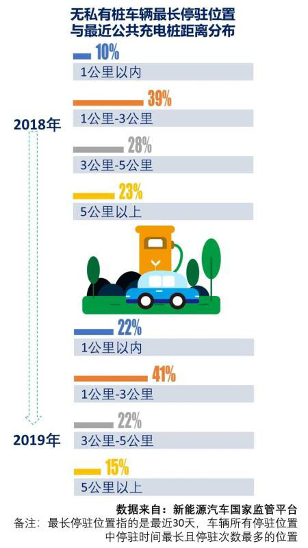 那么,近兩年公共充電設(shè)施建設(shè)與使用發(fā)展趨勢(shì)幾何?好消息傳來(lái),目前根據(jù)新能源汽車國(guó)家監(jiān)測(cè)與管理平臺(tái)數(shù)據(jù)顯示(如上圖),新能源汽車國(guó)家監(jiān)測(cè)與管理平臺(tái)分別統(tǒng)計(jì)分析了2018年和2019年無(wú)私有樁車輛最長(zhǎng)停駐位置與最近公共充電樁距離分布,根據(jù)統(tǒng)計(jì),2018年不足一半(49%)的用戶能在3公里以內(nèi)充電 ,而在2019年這個(gè)數(shù)據(jù)則上升到63%,較2018年提高了14%。也說(shuō)明我國(guó)充電場(chǎng)站建設(shè)正在快速推進(jìn),3公里充電服務(wù)圈正在快速完善。