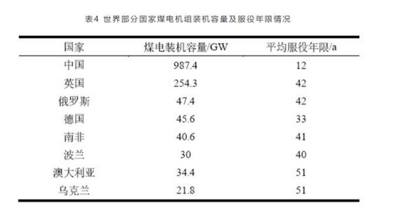 3、國內(nèi)外煤電機組服役年限對比分析