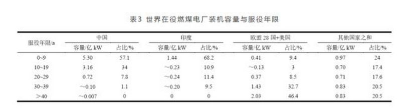 3.1世界各國煤電機組裝機容量和服役年限情況