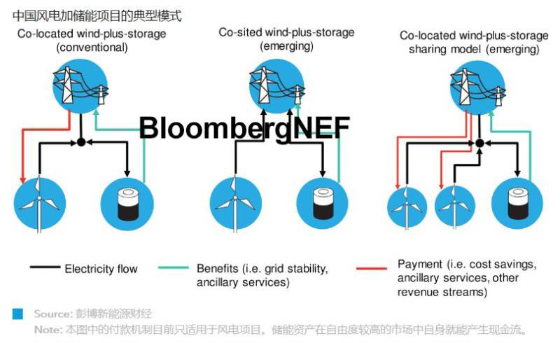 風(fēng)電+儲能領(lǐng)域浮現(xiàn)了多種商業(yè)模式。目前,多數(shù)風(fēng)電+儲能項目是在同一接入點接入電網(wǎng)。在一些較新的模式中,風(fēng)電和儲能是分別并網(wǎng)的。某些情況下,儲能系統(tǒng)由多個可再生能源項目共同使用,這樣的模式之下,多個項目開發(fā)商可分?jǐn)們δ艹杀炯帮L(fēng)險,并提高儲能資產(chǎn)利用率。