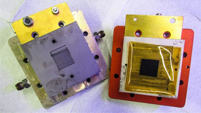 在新電解槽中,改進的離子傳導(dǎo)膜(右側(cè)黃色膜)可以使水產(chǎn)生氫氣,而不需要昂貴的催化劑。圖片來源:YU SEUNG KIM/洛斯·阿拉莫斯國家試驗室