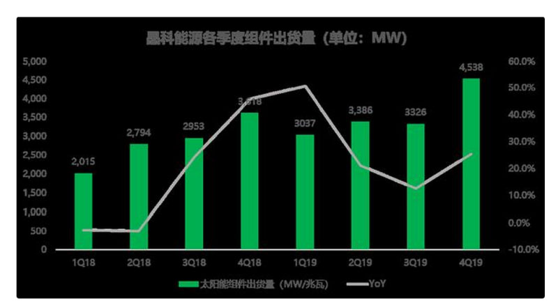 3月13日美股盤前,光伏行業(yè)龍頭公司晶科能源(JKS.US)公布了2019年四季度及全年財報。