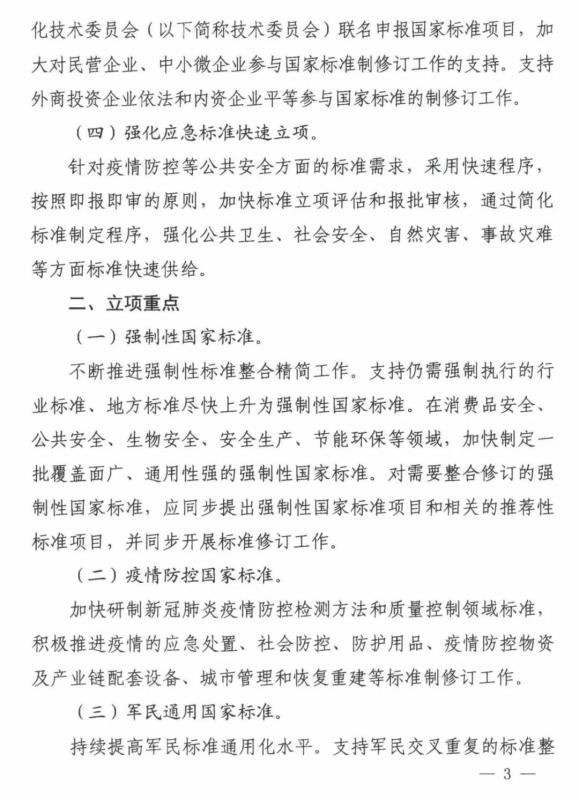 其中,在信息技術(shù)與電工電力領(lǐng)域提到將重點(diǎn)圍繞5G、區(qū)塊鏈、大數(shù)據(jù)、新型云計(jì)算、物聯(lián)網(wǎng)、新一代人工智能、新型智慧城市、超高清視頻、新型顯示、虛擬(增強(qiáng))現(xiàn)實(shí)、集成電路等新興技術(shù)領(lǐng)域,以及關(guān)鍵信息基礎(chǔ)設(shè)施安全保護(hù)、數(shù)據(jù)安全、個(gè)人信息保護(hù)、網(wǎng)絡(luò)關(guān)鍵設(shè)備和網(wǎng)絡(luò)安全產(chǎn)品等網(wǎng)絡(luò)安全領(lǐng)域開展標(biāo)準(zhǔn)研制。推動(dòng)新能源發(fā)電并網(wǎng)、電力儲(chǔ)能、能源互聯(lián)網(wǎng)、港口岸電、電力需求側(cè)管理技術(shù)及裝備標(biāo)準(zhǔn)研制。根據(jù)“華龍一號(hào)”國家重大工程標(biāo)準(zhǔn)化試點(diǎn)需求,開展“華龍一號(hào)”核電標(biāo)準(zhǔn)體系建設(shè)。推進(jìn)新能源汽車智能化、網(wǎng)聯(lián)化、共享化等前瞻性技術(shù)標(biāo)準(zhǔn)研究。圍繞安全和信息安全、車用操作系統(tǒng)、通訊協(xié)議、無線充電、大功率充電、燃料電池、高性能動(dòng)力電池、動(dòng)力電池回收利用等方面開展標(biāo)準(zhǔn)研制。