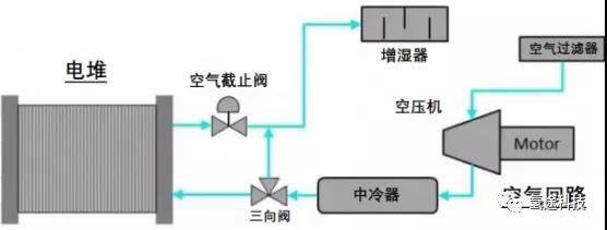 此外,對于目前采用離心式空壓機的系統(tǒng),還可令其在電堆功率較低時,維持較大的流量,并通入旁通路,可以有效的避免空壓機喘振現(xiàn)象的出現(xiàn)。