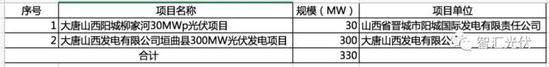山西?。?個(gè)項(xiàng)目,共0.33GW