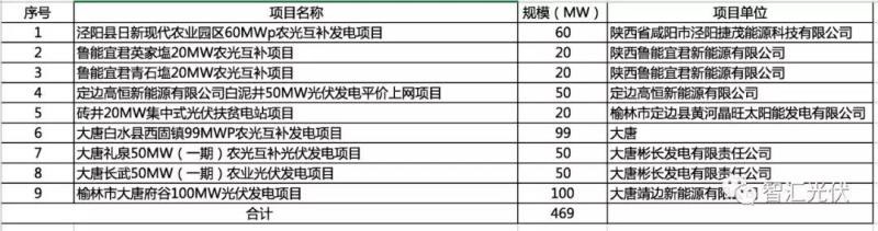 陜西?。?個(gè)項(xiàng)目,共0.47GW