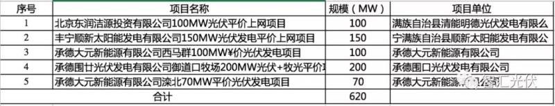 河北?。?個(gè)項(xiàng)目,共0.62GW
